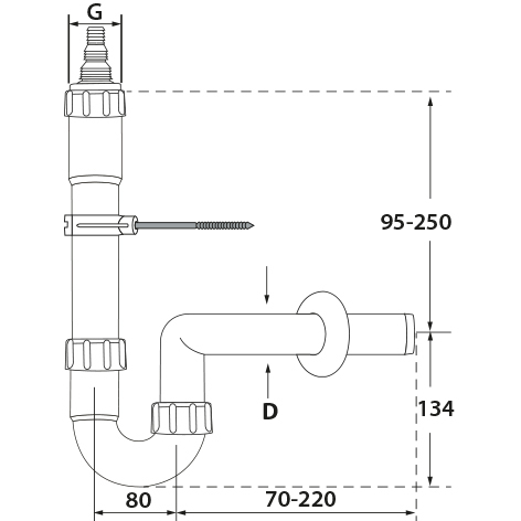 Der Geräte-Siphon mit Kombi-Geräteanschluss 3/4” (19 mm) auf